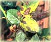 斑点がだんだん大きく広がっていくと、やがて病斑部のまわりから黄色く変色し落葉します。