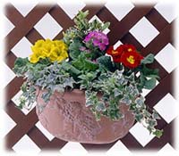 プラスチック型は鉢の上にだけ植物が植えれるタイプと側面に切れ込みや穴があって鉢の周りにも花苗が