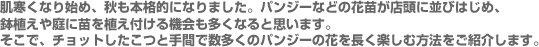 パンジーの花苗を植付ける前に花壇の準備をしましょう。