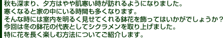 このほうが株の弱りがなく、花も春先の最後まで楽しめます。